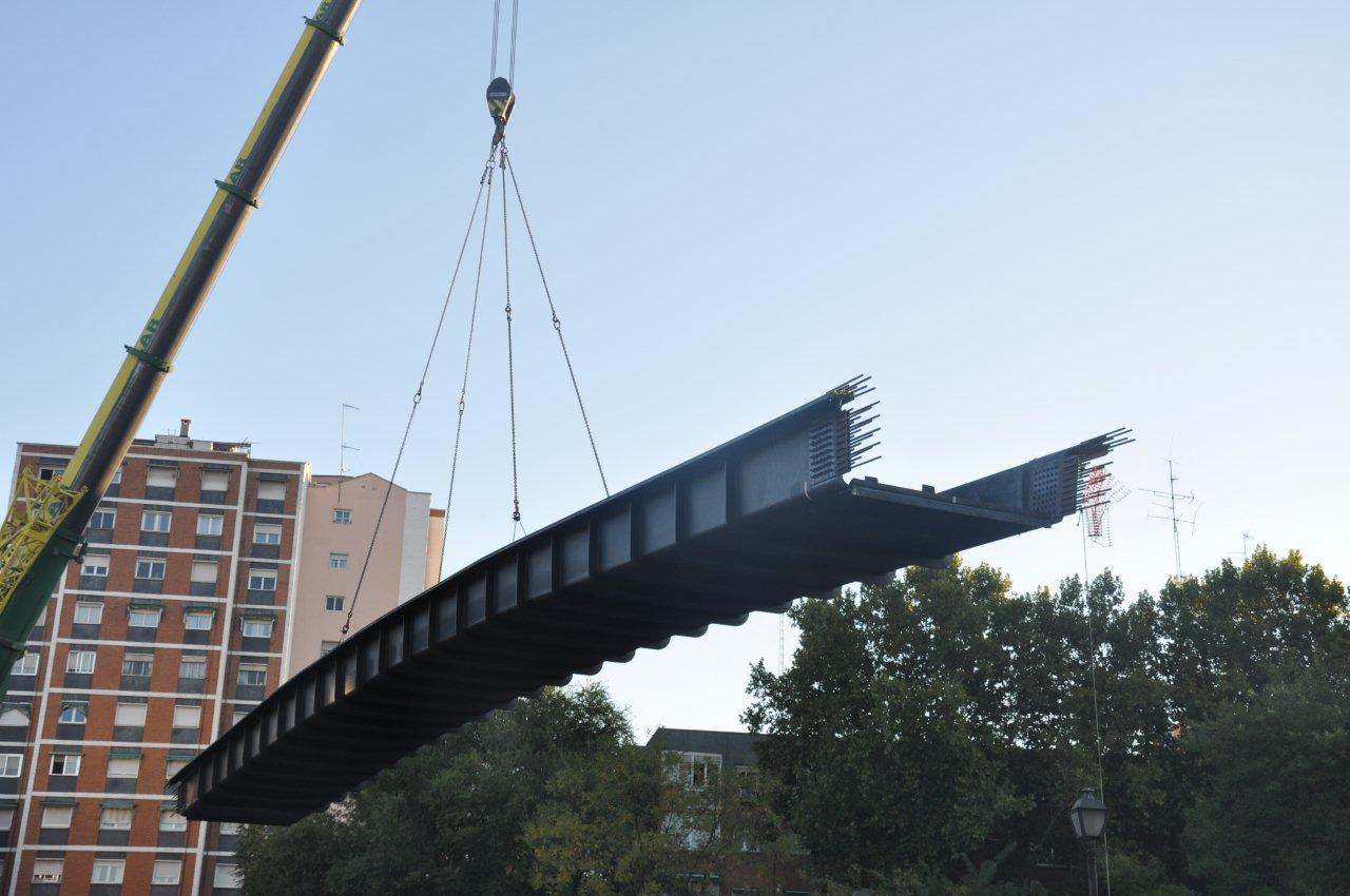 La pasarela se trasladó a la obra y se colocó con la ayuda de una grúa sin interferir en ningún momento con el río Manzanares.